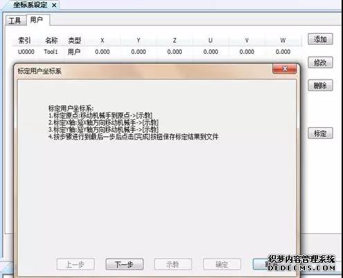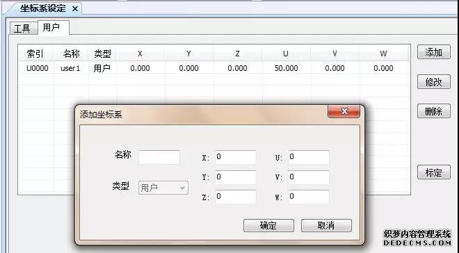 将已知的用户坐标系手动输入至相应的位置