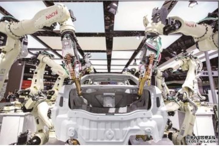 进博会上展示的运用于汽车制造的机器人。 张挺摄